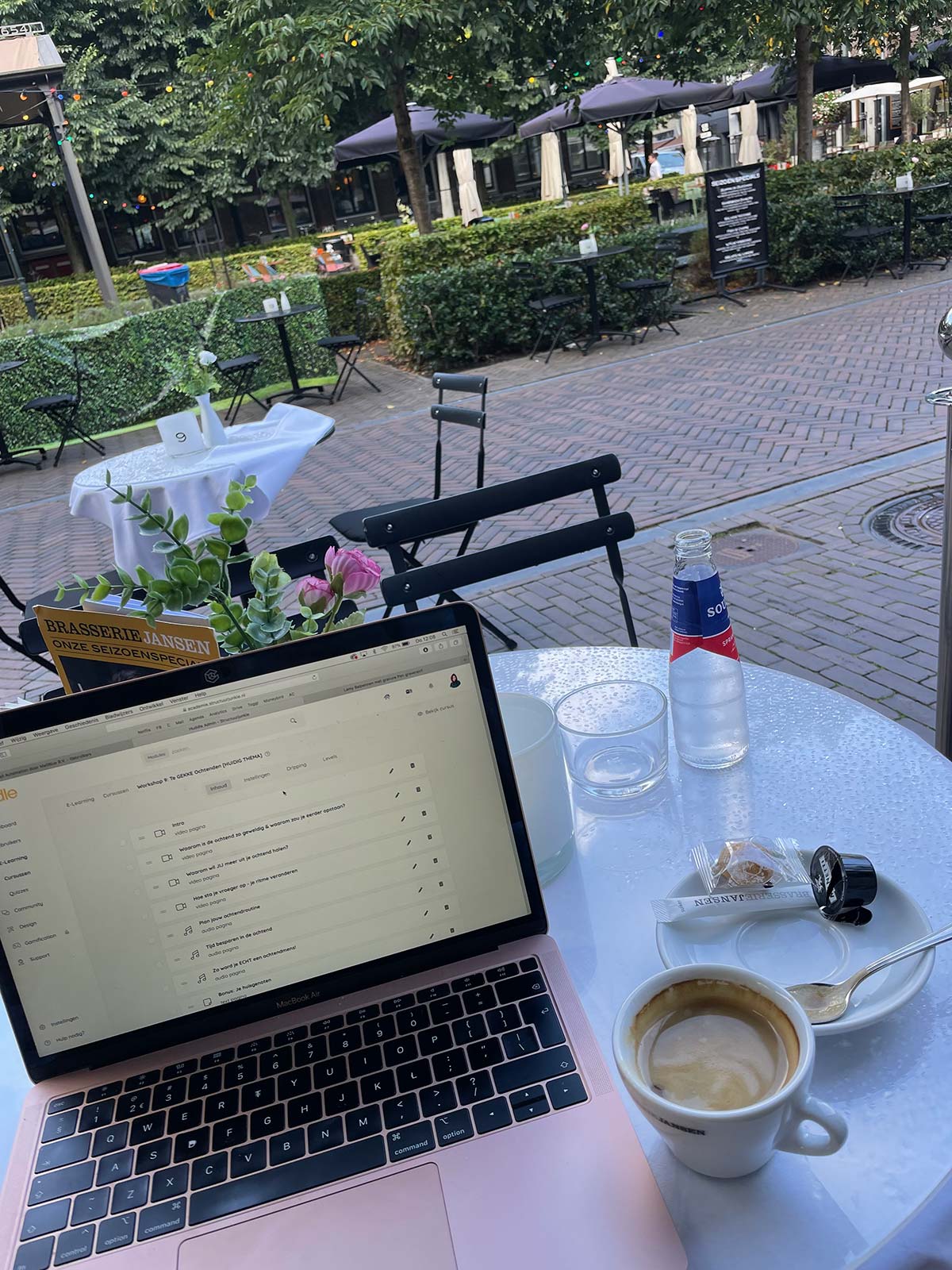 Ik ben wat vroeger dus ik zit even lekker zo te werken op het terras bij Brasserie Jansen. Net als vroeger 😉