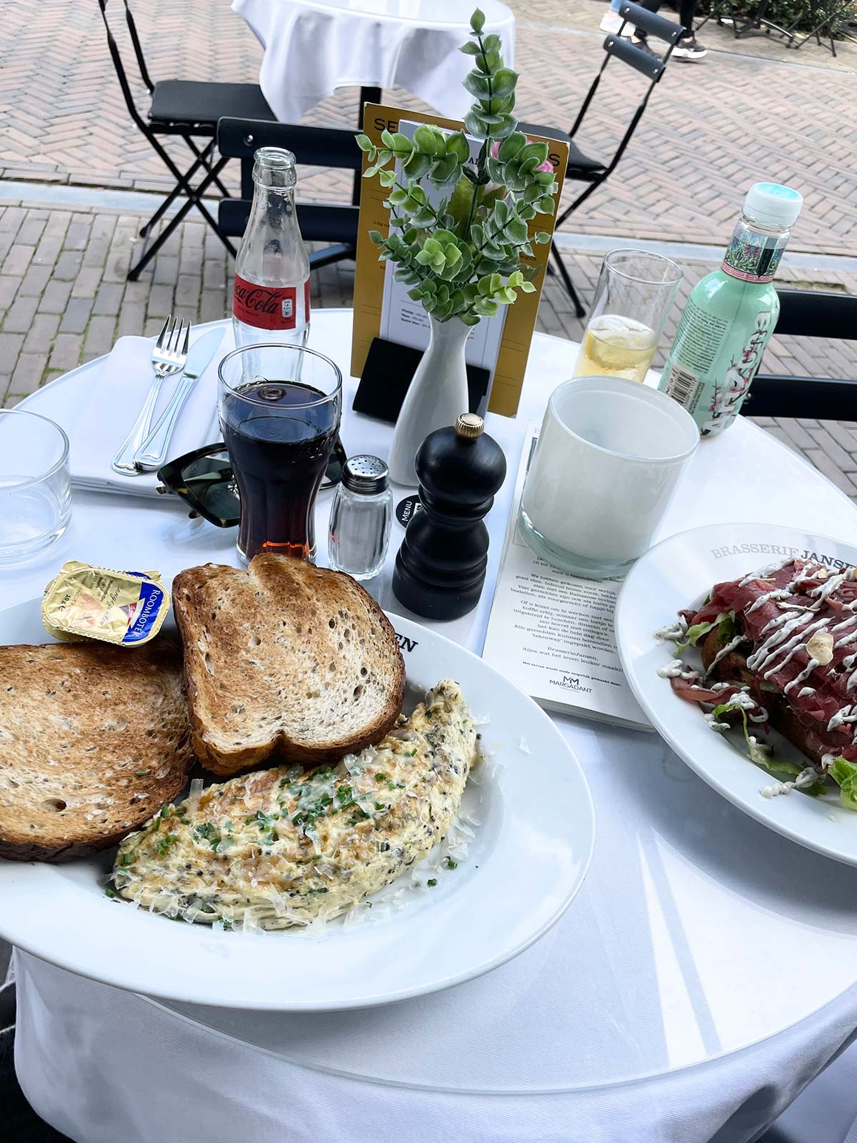 Lunch! Ik heb een omelet met truffel en parmezaan en die is geweldig.