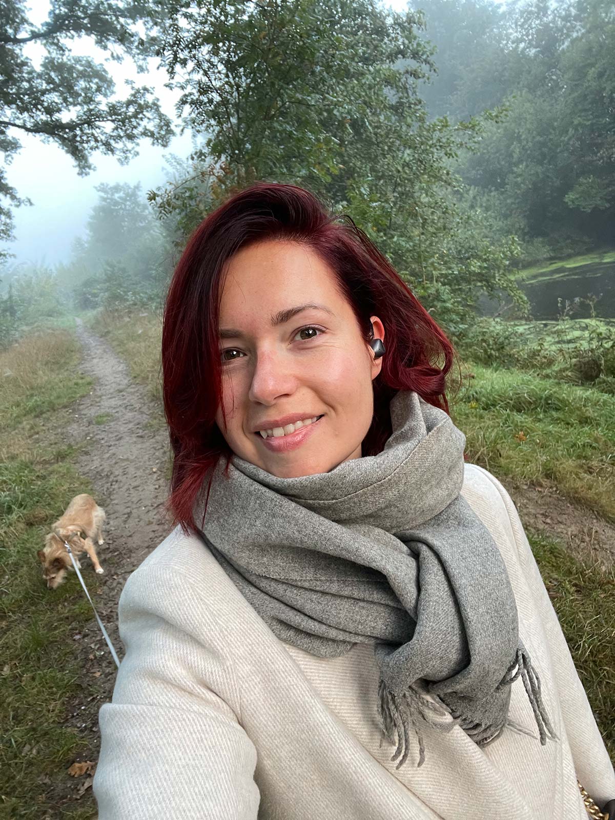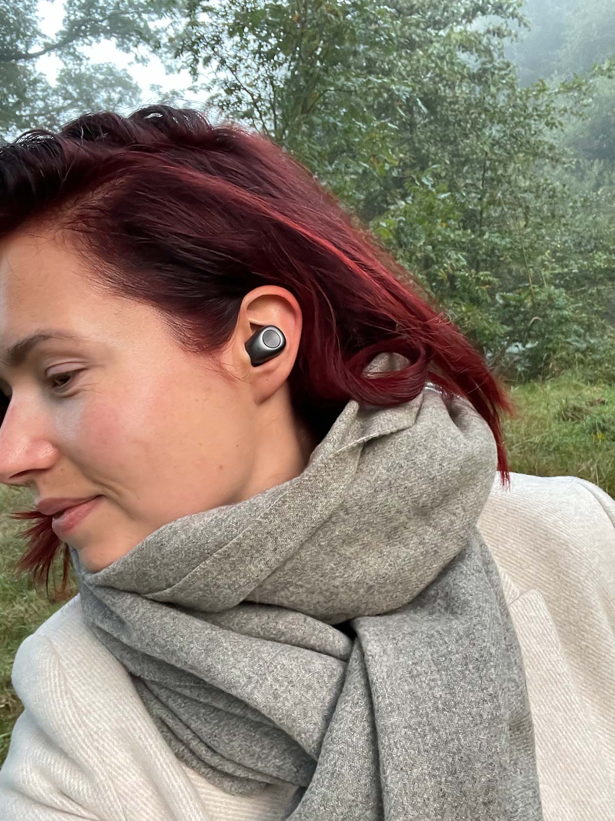 Het is weer weer voor sjaals! Jaaa heerlijk. En zie je die dingen in m’n oren? Dat zijn m’n nieuwe draadloze oordopjes van KEF, de Mu3 oordopjes.