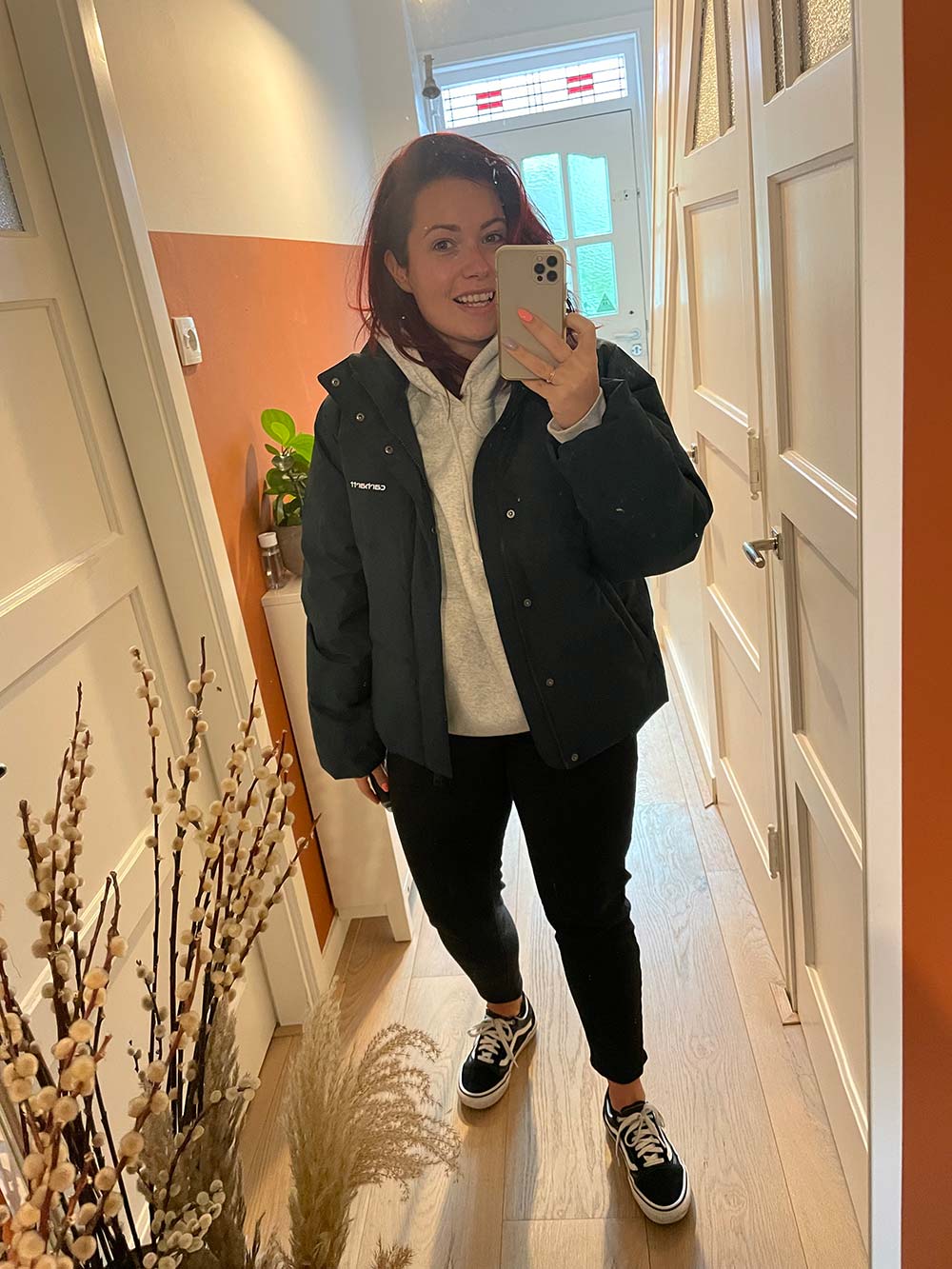 Zo blij met m’n nieuwe jas, haha. Hij is van Carhartt.