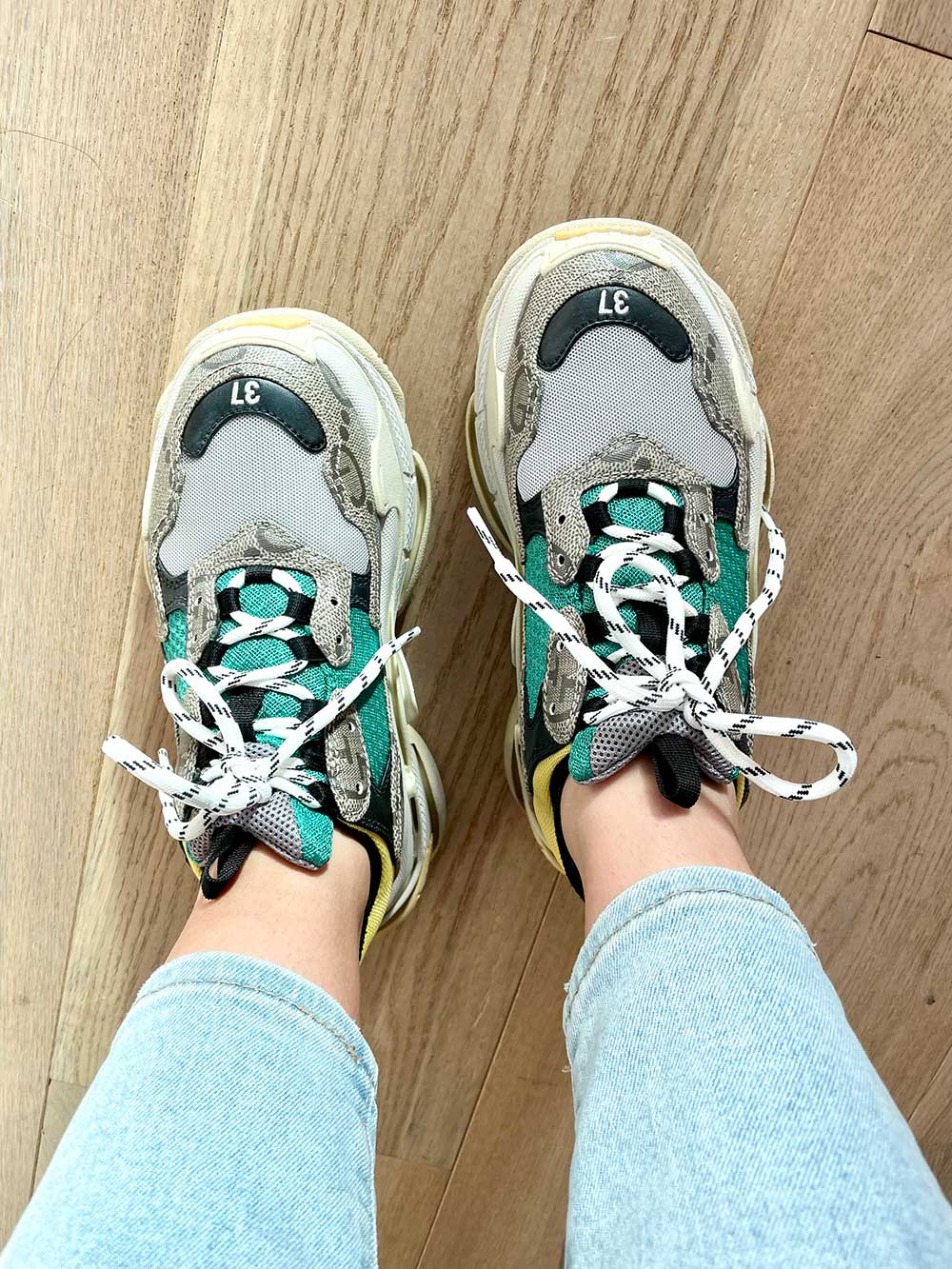Mijn nieuwe schoenen kwamen binnen! OMG. Ik zag dat Gucci een samenwerking (‘hack’) had met Balenciaga en toen ging ik overstag voor de Triple S sneakers.