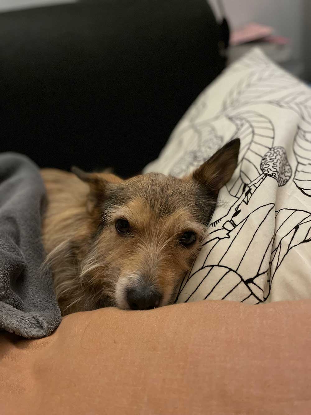 Awwwwww. Het was een heftig weekje voor Kees. Ze kreeg weer een of andere rare aanval die ze jaren geleden ook had en we houden haar dus extra in de gaten. Willem is met haar naar de dierenarts geweest en we zijn doorverwezen naar de neuroloog. Daar heeft ze afgelopen weken onderzoeken gehad, en het lijkt iets te zijn met haar evenwichtsorgaan. Er is bloed afgenomen en ze gaan nog wat andere dingen onderzoeken, dus afwachten. Daarom slaapt ze nu tijdelijk bij ons op de slaapkamer zodat we haar beter in de gaten kunnen houden.