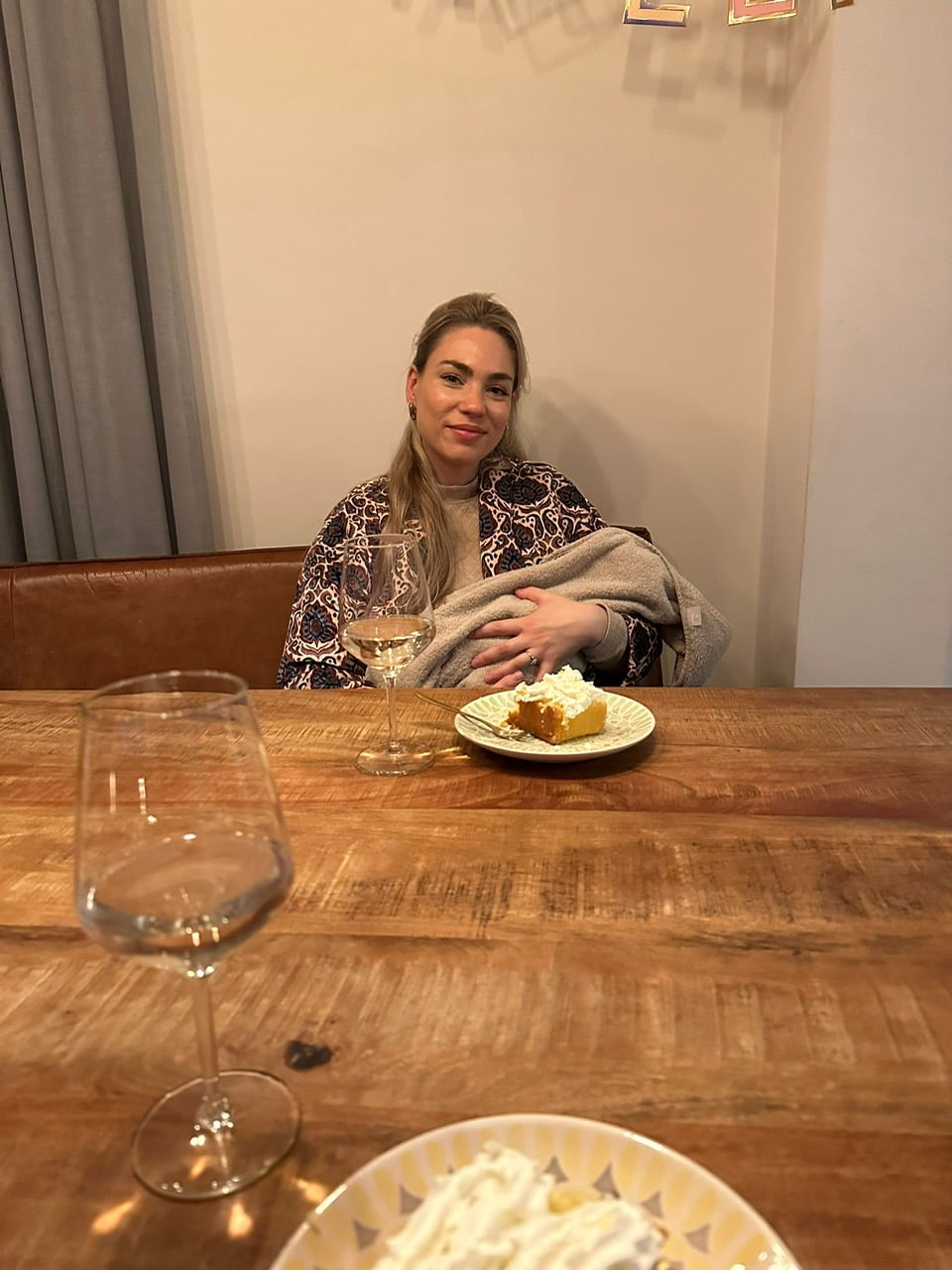 Ik ging ook kraamschudden bij vriendin Neelke die bevallen is van Vive, een heel lief klein pupke. Wijn met cake EN slagroom is overigens een PRIMA combinatie. Dan weet je dat.