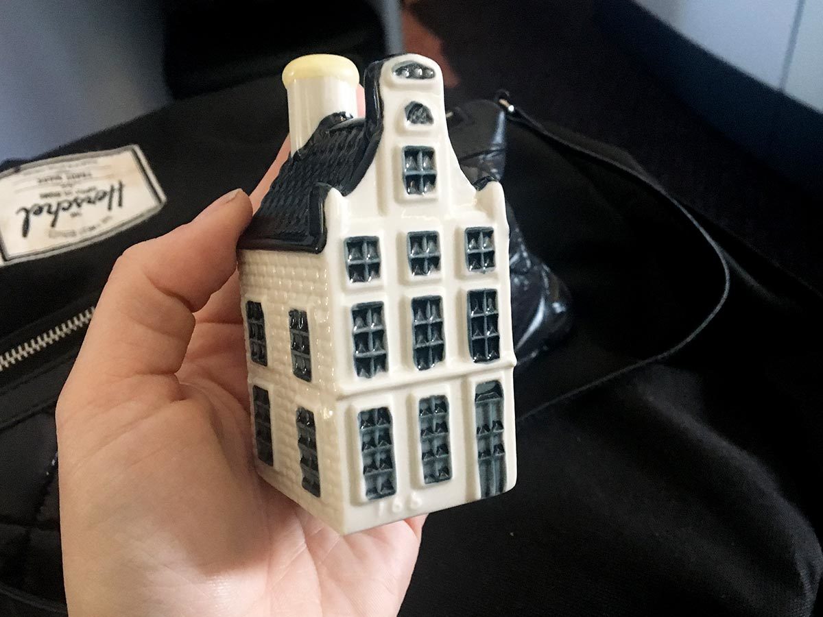 Vlak voor het landen mag ik een Delfts blauw huisje uitkiezen!