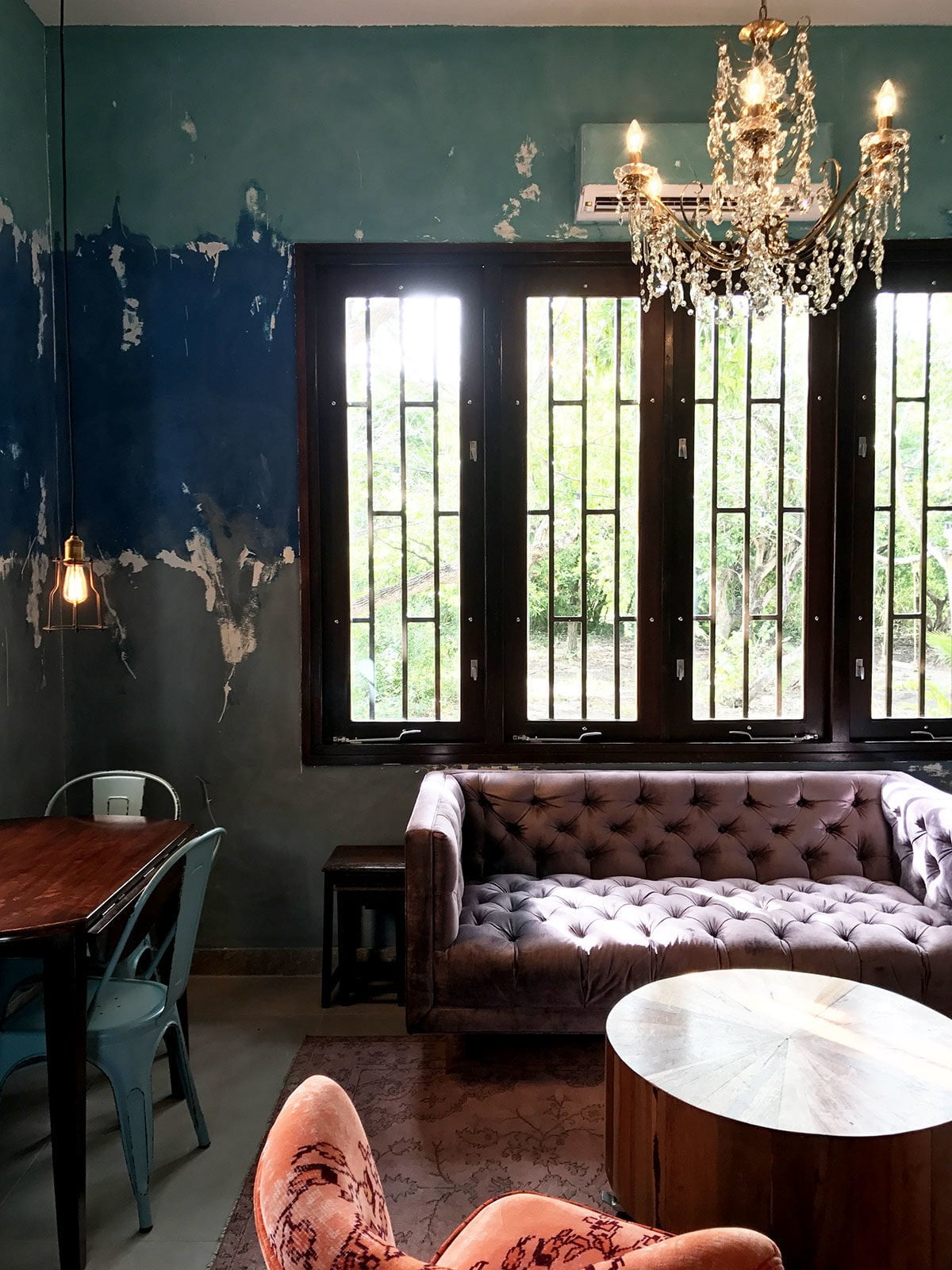Zodra we het zweet en de modder van ons afgespoeld hebben in het hotel gaan we richting Hofi Cas Cora. Hier wilde ik vorig jaar al heen, maar toen kwam het er niet van. Nu zijn we uitgenodigd voor een lunch, zo leuk! Hofi Cas Cora is een ontzettend leuk restaurantje in een oud landhuis. Ze werken met veel lokaal verbouwde groenten (wat niet vanzelfsprekend is, veel groenten en fruit wordt geïmporteerd, er wordt maar weinig verbouwd op het eiland) en hebben een bescheiden kaart.