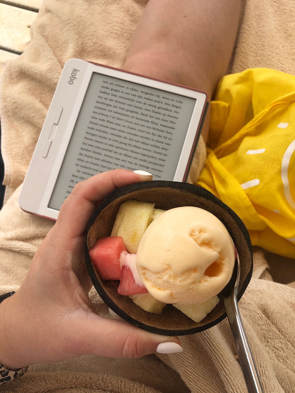 Op het strand krijg je een Beach snack, vandaag is dat ijs met vers fruit.
