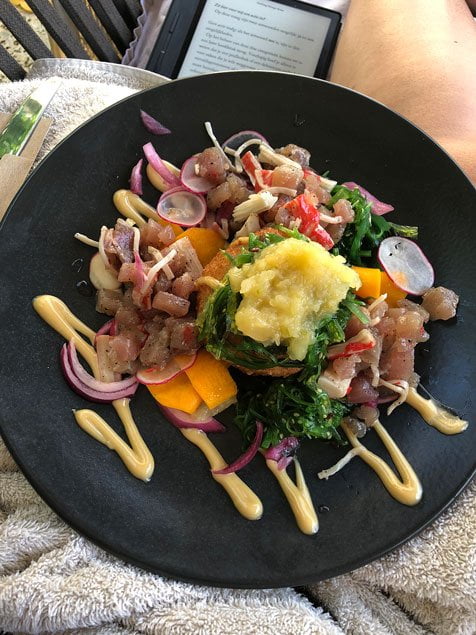 Ik heb deze tonijntartaar, beetje veel, maar wel heel erg lekker.