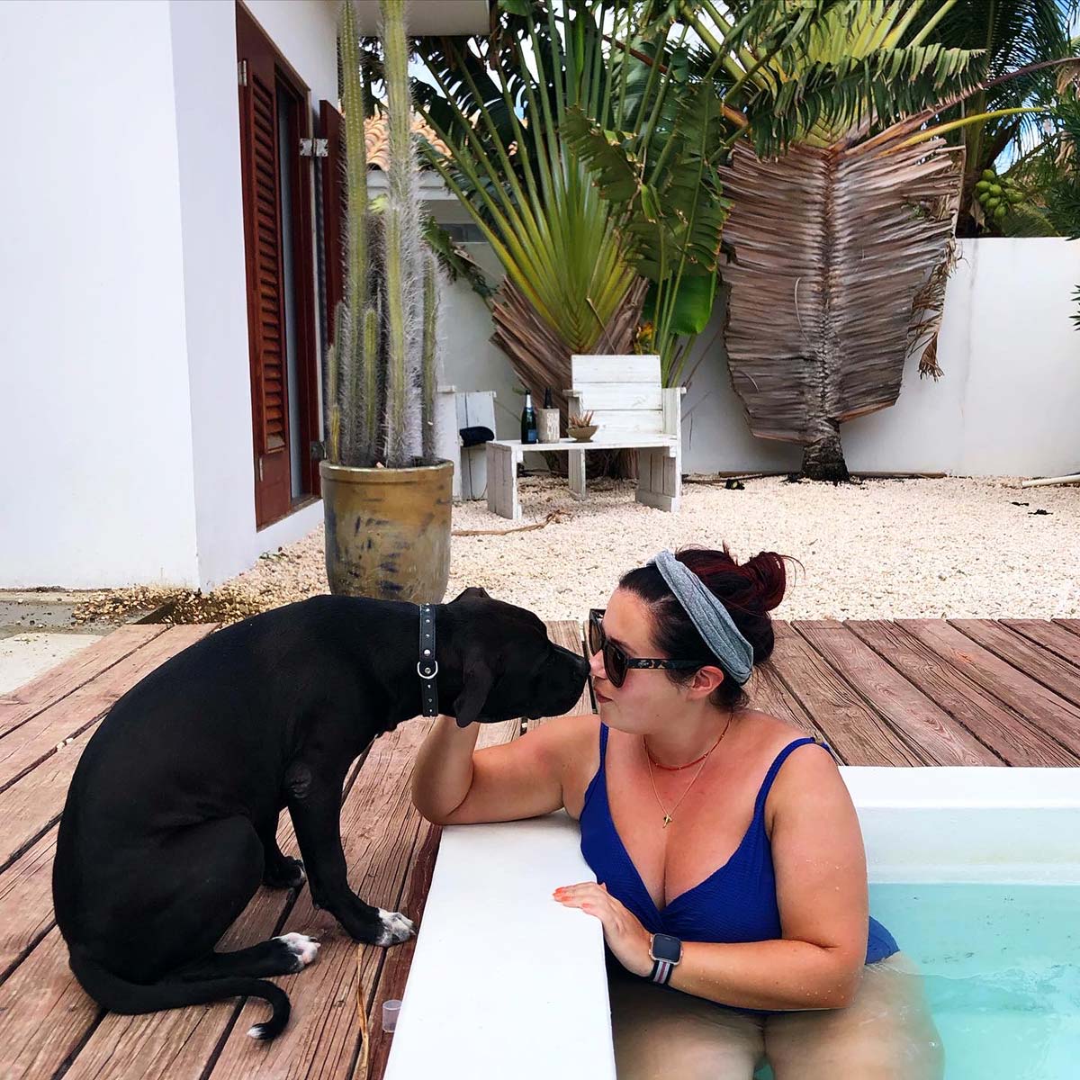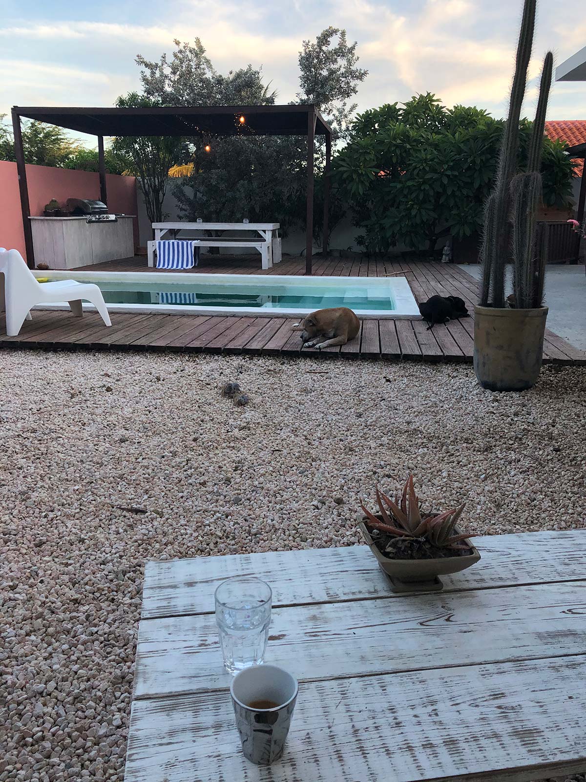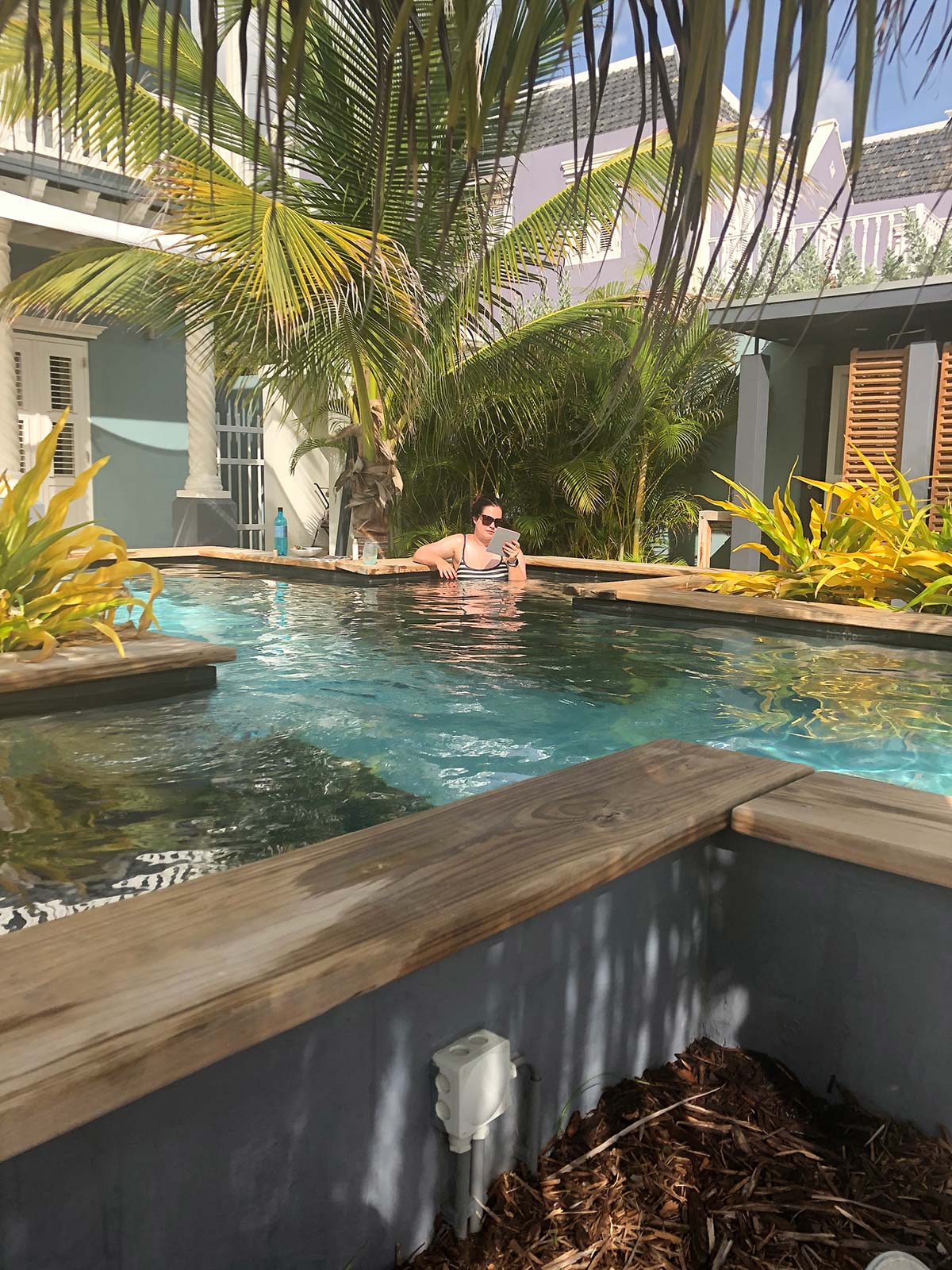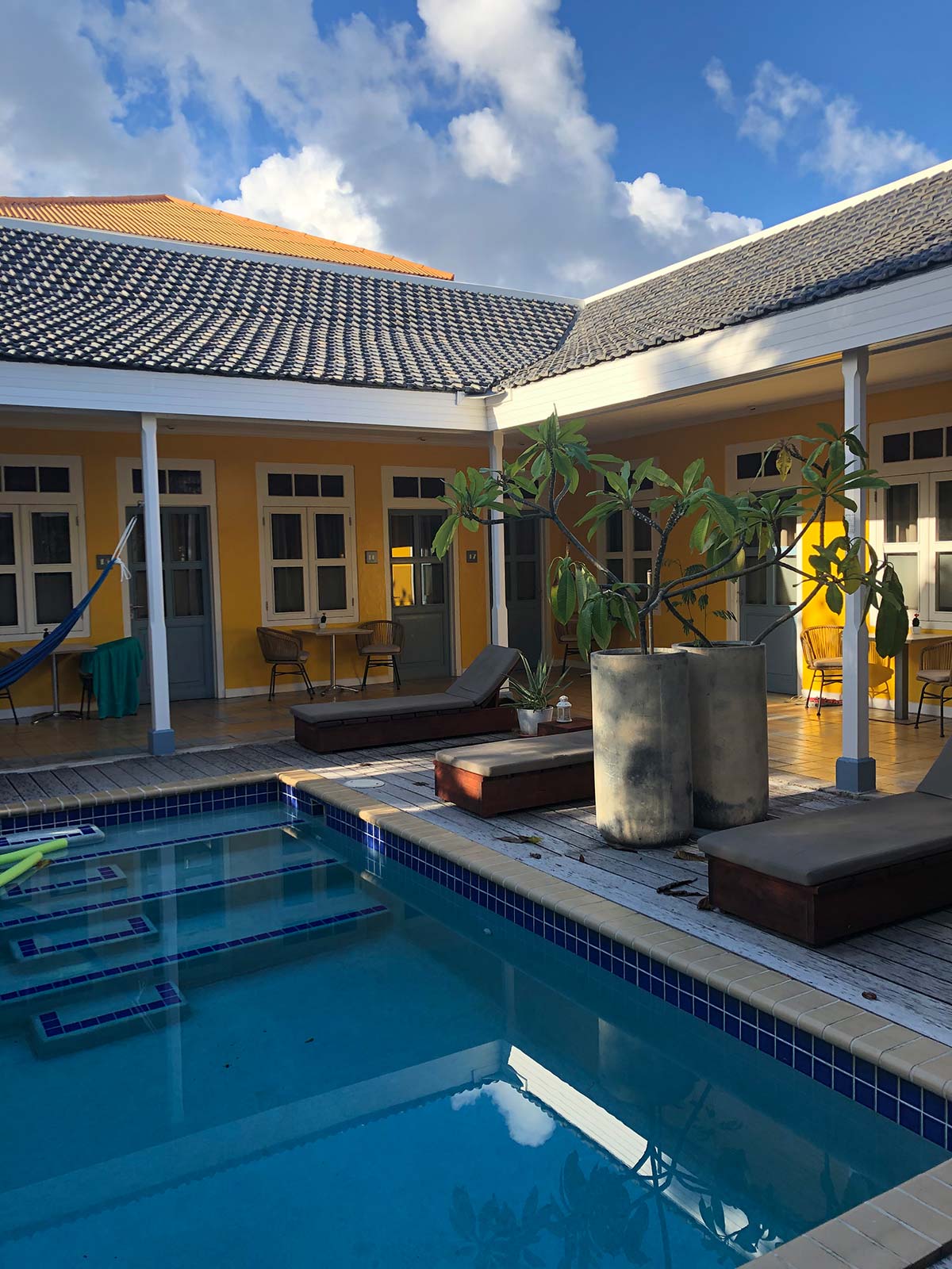 Annemieke en ik verbleven in twee verschillende accommodaties op Curacao: de eerste vijf dagen in Hotel ’t Klooster, waar ik al vaak ben geweest. Zo’n fijne, knusse plek in Pietermaai, een bruisende en gezellige wijk in Willemstad. Daarna gingen we naar de AirBnB van mijn vriendin Joia, in Jan Thiel. Ook hebben we nog twee dagen (overdag) in het zwembad gehangen in een fantastische AirBnB van bekenden, waar we uitgenodigd waren. Ultiem relaxed.