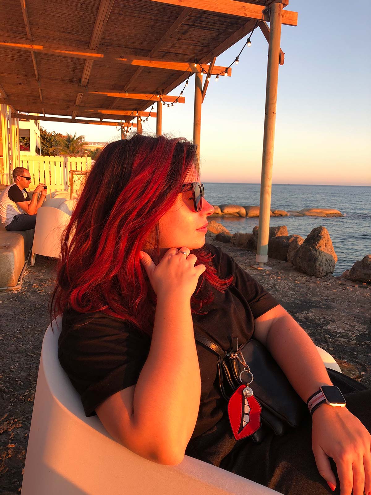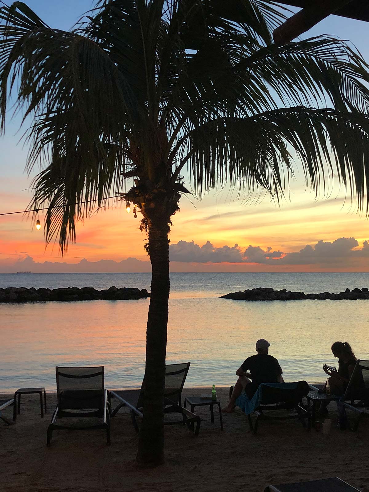 Laatste avond zonsondergang kijken met een biertje bij Chill op Mambo Beach. Met mijn nieuwe zonnebril van SeeYa Collection!
