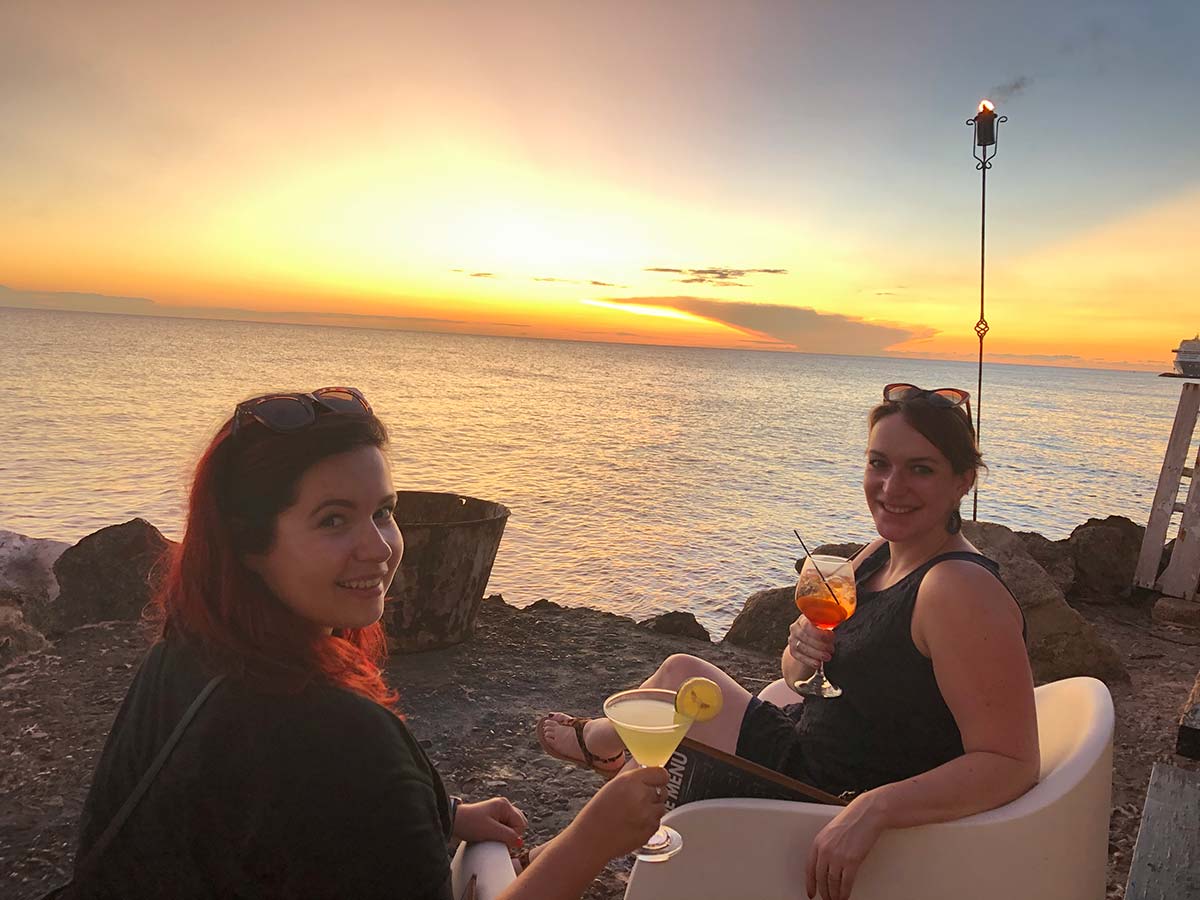 Cocktails en kijken naar de zonsondergang.