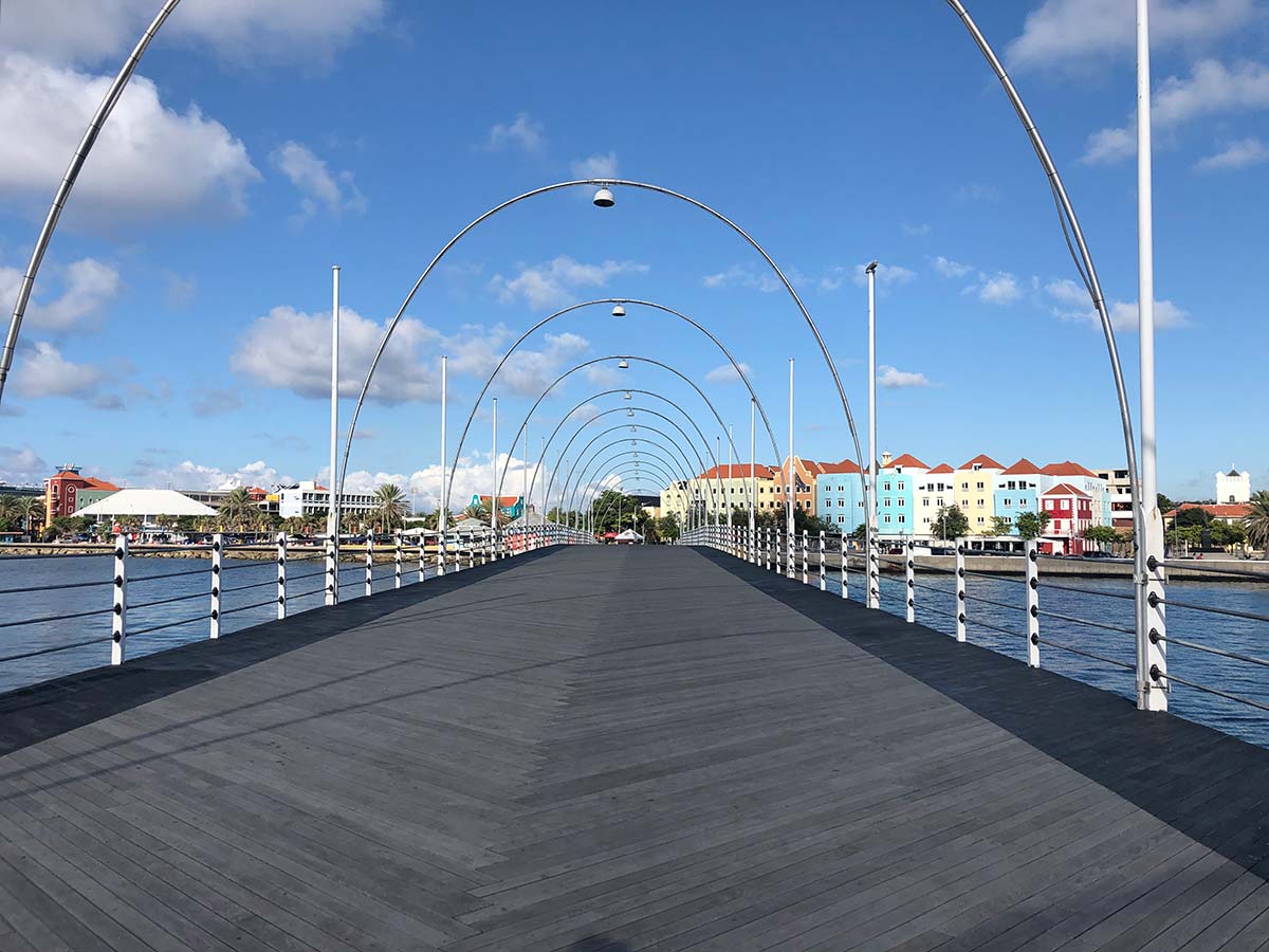 Wandelen in Willemstad, en toen ging de brug open… Hahah. De pontjesbrug gaat open als er een boot langs moet, en je hoeft niet per se de brug af als dit gebeurt. Maar nu bleef hij langer dan een half uur open en zaten we erop vast. Nu weten we dat we naar de vlag moeten kijken, maar wisten wij veel…