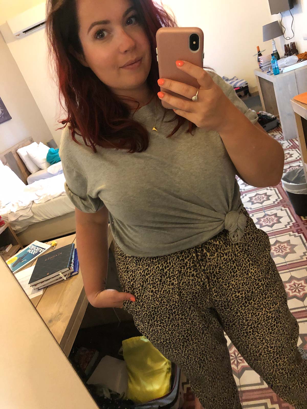 Even een ouderwetse spiegeloutfitfoto. De broek is van Hollister en het t-shirt van H&M.