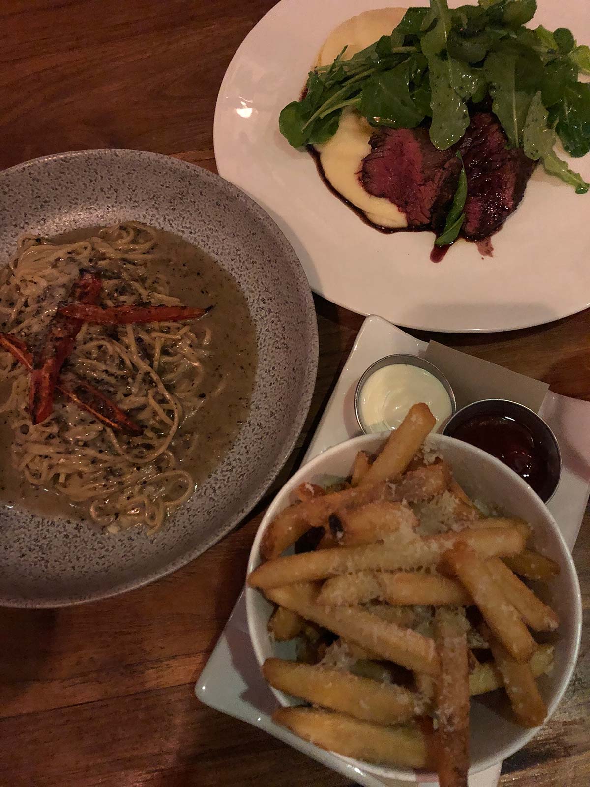 Cacio e Pepe, hanger steak en parmezaan frietjes. Och.