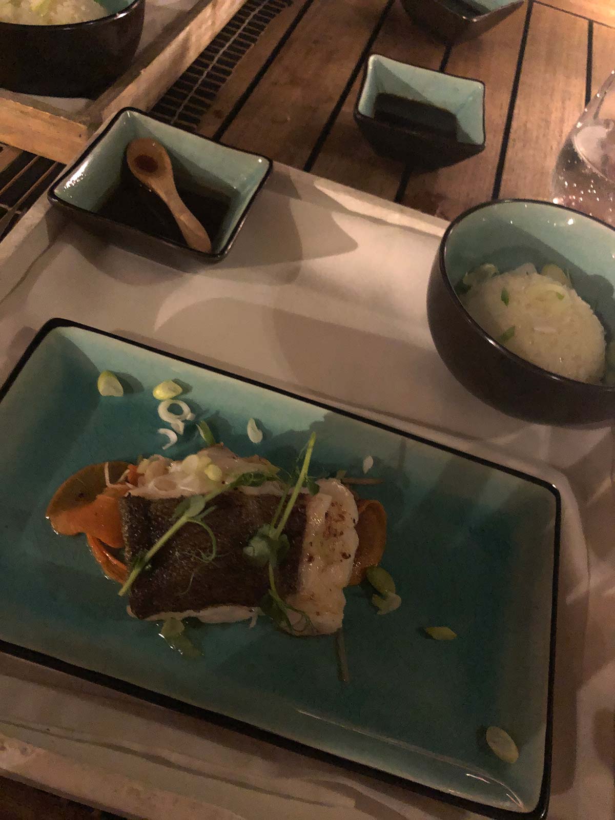 Na mijn workshop gaan we eten bij Kome, een van mijn favoriete restaurants hier. Vooraf funchi fries met duck confit.