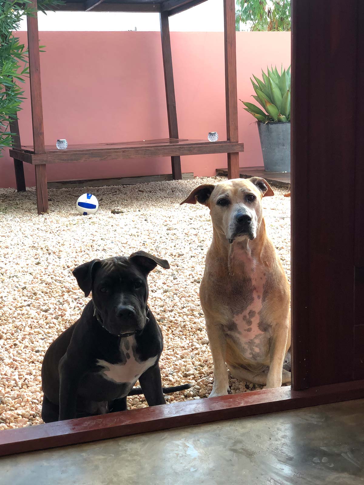 We delen de tuin met Max, Joia, Lux, Beau en de honden die hier wonen.