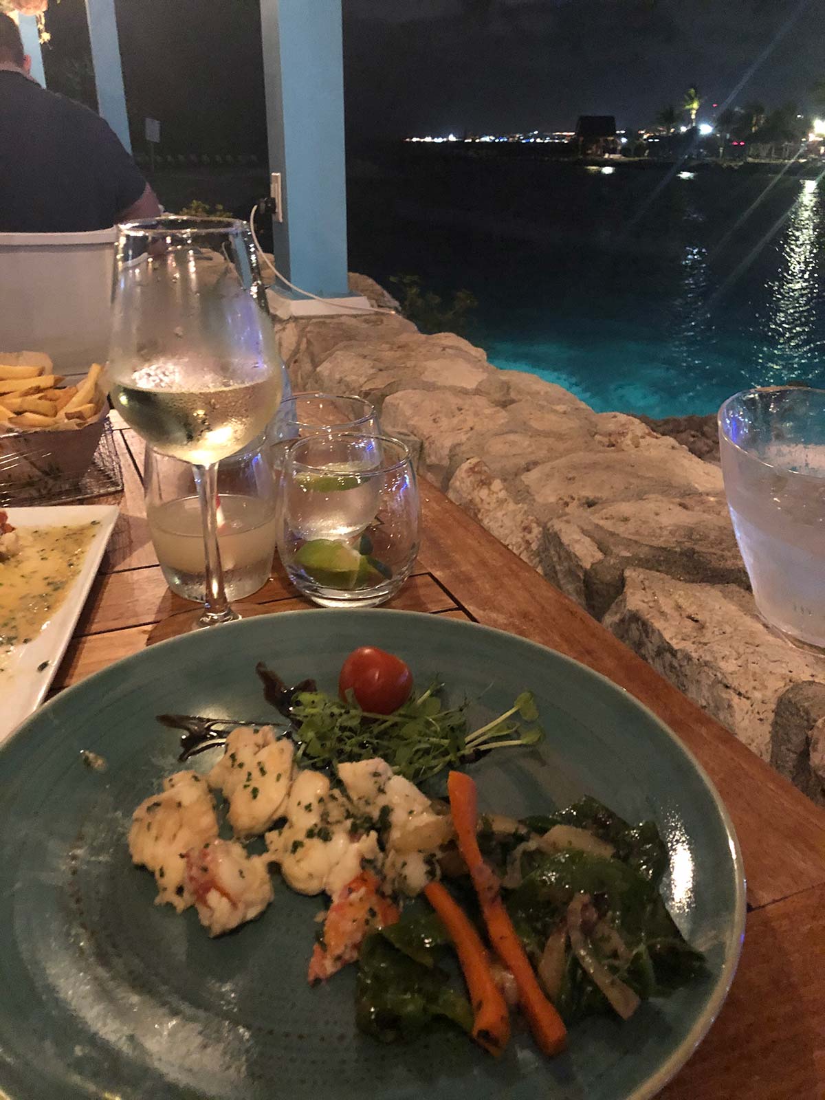 Tijdens onze laatste avond zijn we uitgenodigd om bij Laman te komen eten. Dit restaurant zit aan Mambo Beach, bij het Seaquarium, en de plek is zo mooi, aan het water.