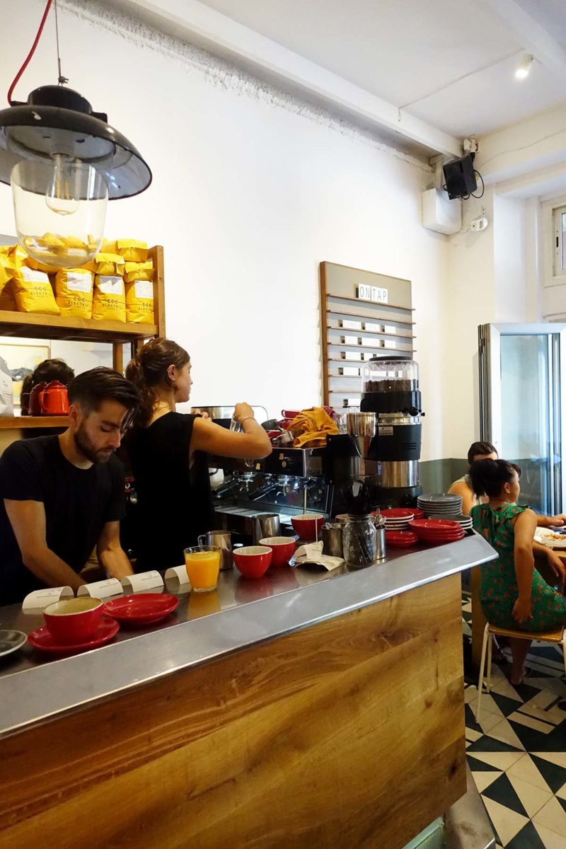 In 1870 is dit restaurant geopend en ze hebben twee pizza’s: de marinara (de eerste pizza die ooit werd gegeten, met tomatensaus, oregano en knoflook) en de Margherita (in 1889 gecreëerd door Raffaele Esposito als eerbetoon aan koningin Margherita di Savoia), met de kleuren van de Italiaanse vlag: rood (tomatensaus), wit (mozzarella) en groen (basilicum). Je staat er eventjes voor in de rij, en al helemaal als je binnen wilt zitten aan een tafeltje, dus wij eten ‘m gewoon op straat op. En ja, die pizza is écht heel erg lekker. Het is niet de beste pizza die ik ooit heb gegeten, maar hij smaakt fantastisch.