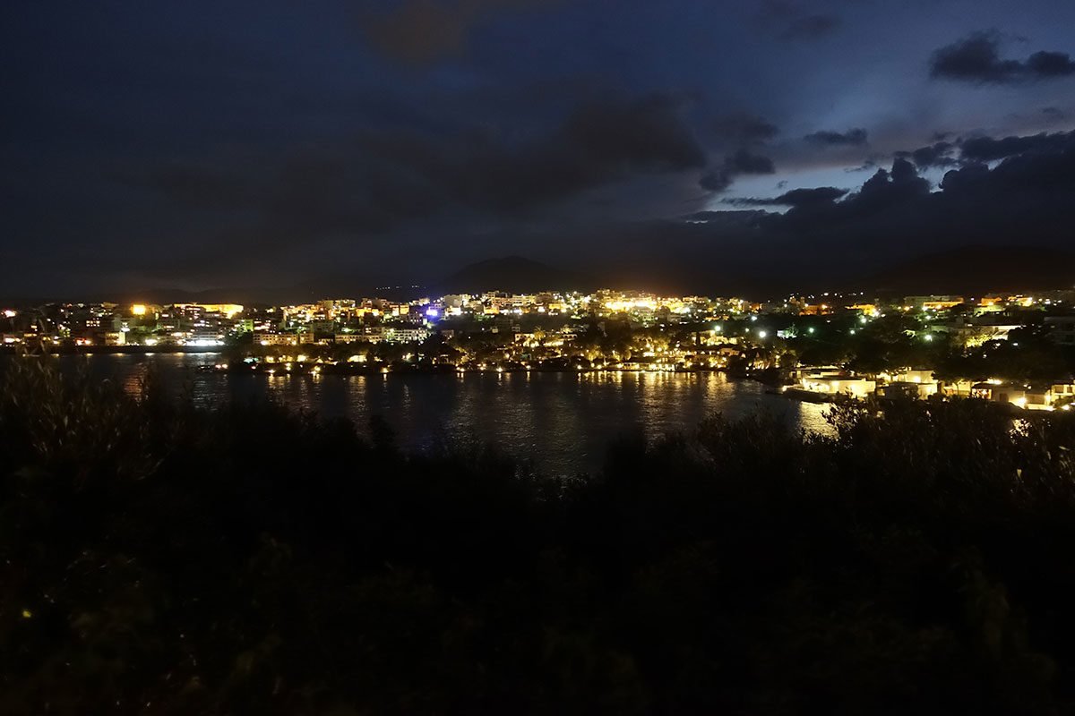 ’s Avonds nemen we een taxi naar de stad (€6). Dit zien we vanaf het hotel.