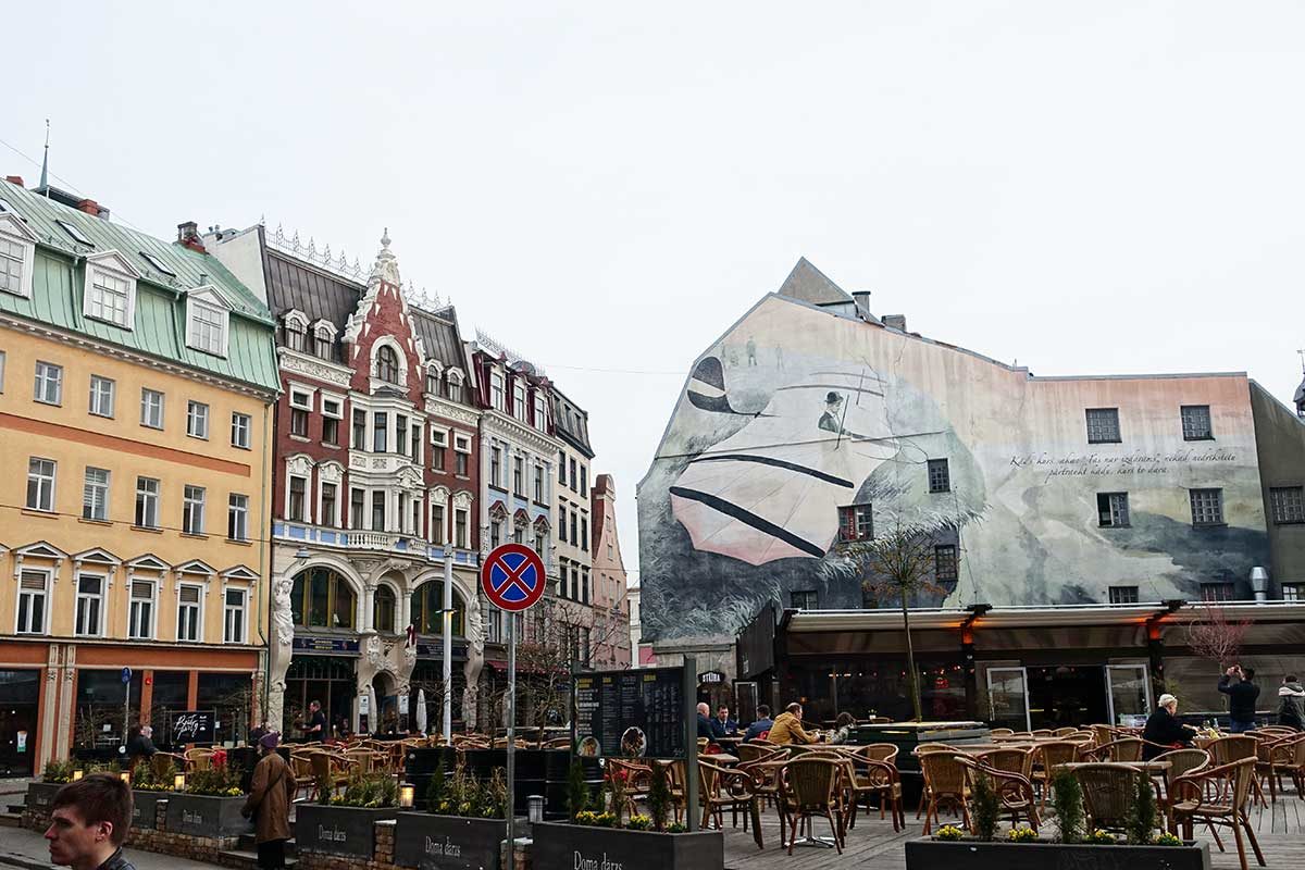 Overal zie je mooie straatjes, pleintjes en gebouwen hier in Riga.