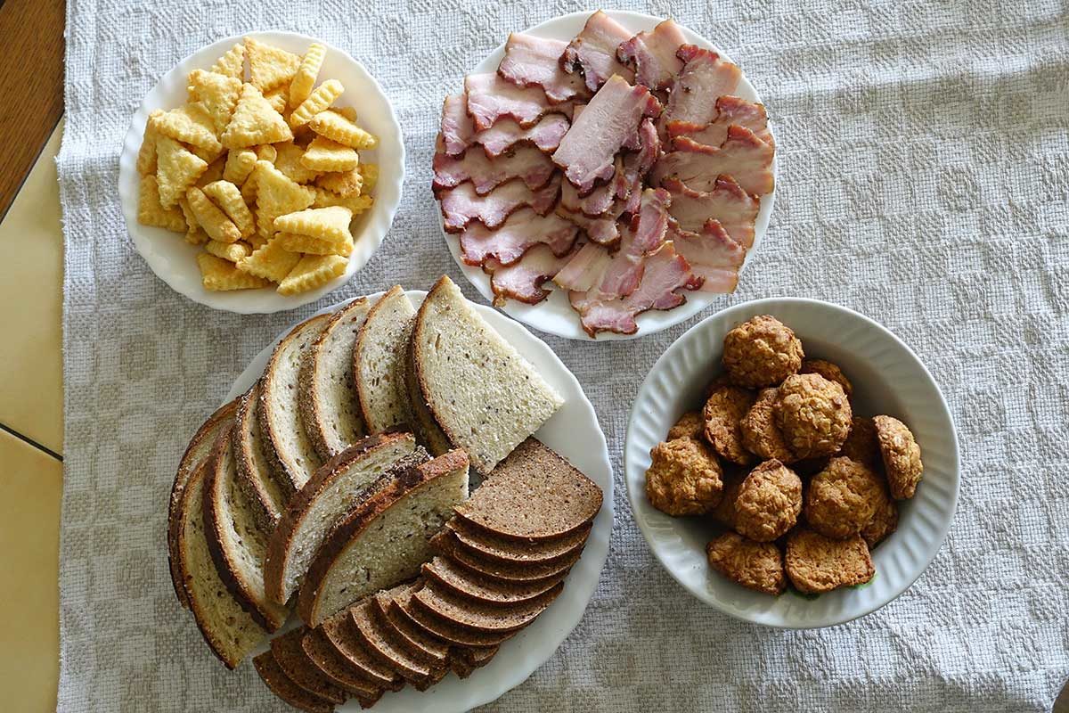 We mogen alles wat deze mensen hier maken proeven: bier, roggebrood, havermoutkoekjes, kaaskoekjes en gerookt vlees.