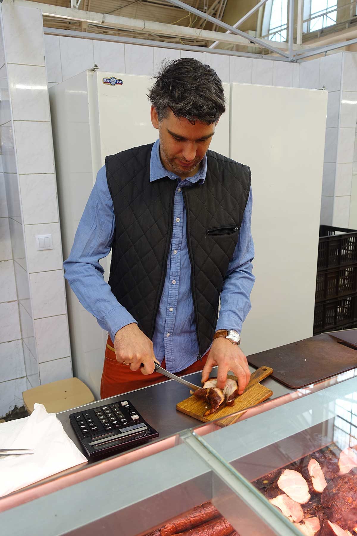 Om elf uur hebben we een afspraak bij de Riga Central Market met chef Martins Sirmais een van de chefs van Restaurants 3 Pavaru. Hij gaat ons rondleiden door de markt en boodschappen doen voor de lunch die we straks gaan maken.