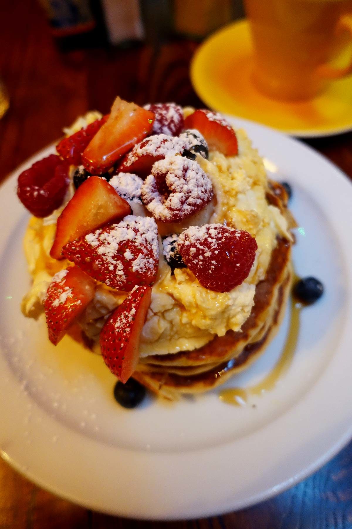 Ontbijten moest ik volgens een heleboel mensen bij The Breakfast Club. Van buiten lijkt het wat shabby, van binnen is het een kleurrijk vintage geheel. Ik ging voor pannenkoeken en kreeg een énorme stapel met énorm veel room en fruit. Ik kwam tot de helft – maar het was heerlijk.