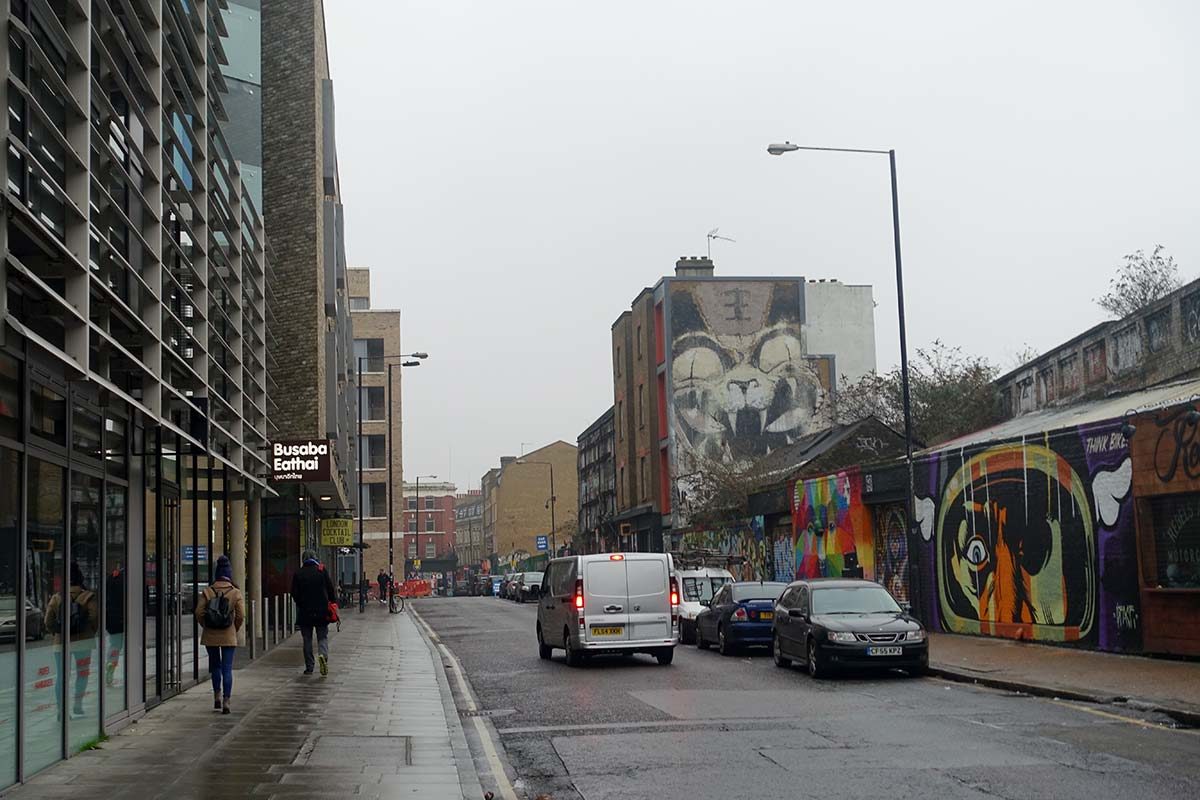 Ik ging voor Shoreditch vanwege het simpele feit dat ik daar sliep vanwege een event, maar ook omdat het me erg aanspraak – als ik op de foto’s en verhalen op internet af moest gaan. De wijk ligt in het oosten van Londen, boven de Theems. Sinds halverwege de jaren negentig is Shoreditch populariteit aan het winnen en er zijn veel internetbedrijven gevestigd zoals Last.fm. Er is veel creativiteit: je ziet dat aan de grote hoeveelheden streetart, maar ook aan de galerijen, bioscopen en kleine zelfstandige ondernemers die in het gebied gevestigd zijn.