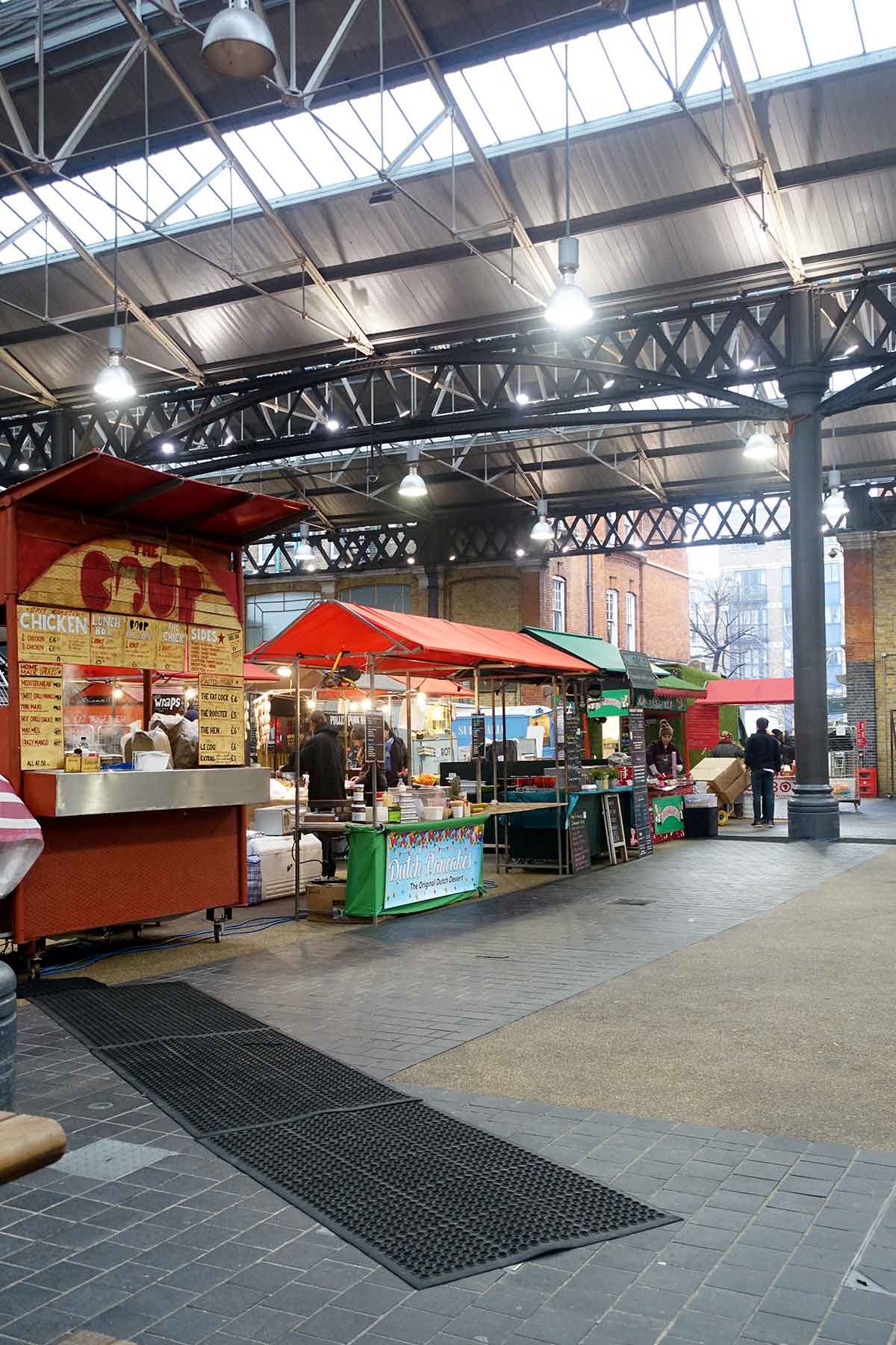 Een aparte vermelding verdient Old Spitalfields Market, een grote overdekte ‘hal’ met daarin allemaal mooie winkels (zoals Bobbi Brown, MAC, Chanel en Urban Decay) én een heleboel kraampjes. Afhankelijk van de dag staan er verschillende. Zo is er op donderdag een antiekmarkt, op vrijdag vooral kleding en kunst, op zaterdag is er altijd een thema en op zondag is er van alles. Naast het aanbod van kraampjes staan er ook altijd verschillende foodtrucks. Ze zijn elke dag open 10 tot 5, behalve op zaterdag, dan zijn ze om 11 uur open.