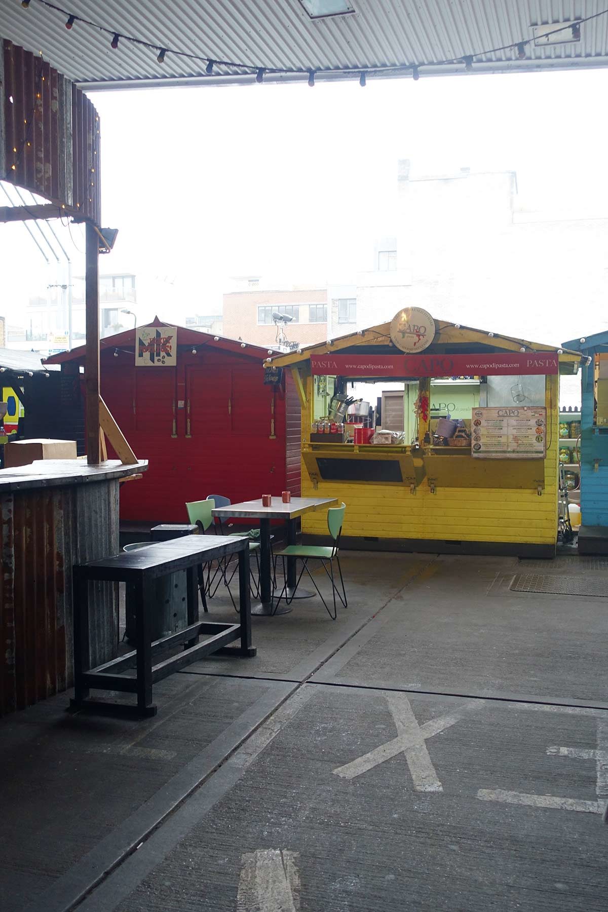 Iets verderop zit een soortgelijke streetfood market, waar ooit een tankstation zat. Ook daar kan je je te buiten gaan aan lekkere hapjes zoals kip, pita’s, Indiaas eten, wafels en bubble tea, falafel, pasta, steak… Er is veel keuze! Ik heb bij BLOCK en PUMP beide niet gegeten (het was erg koud en nat, dus ik ging liever naar binnen), maar het rook heerlijk en zag er goed uit voor zover ik het kon zien.