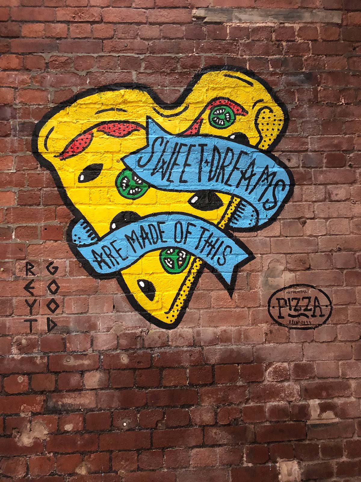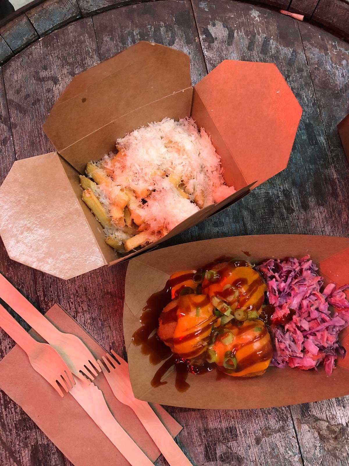 Onze food tour zit erop en Sophie zet ons af bij Peddler Market. Dit is een hal met allemaal streetfood kraampjes. Elke maand zijn ze twee dagen open, check vooraf even de website welke data het zijn. Er staat van alles, van pizza tot ribs en hamburgers en er zijn ook genoeg vega(n) opties. De sfeer is leuk, er staat een dj te spelen en er staan kunstenaars met kraampjes om hun prints en sieraden te verkopen.