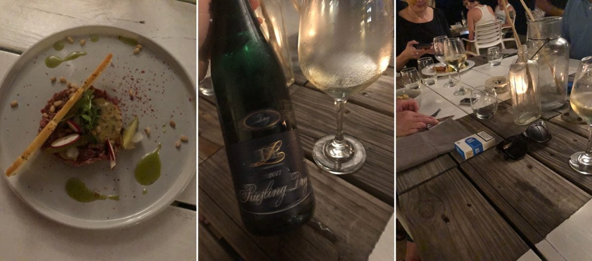 Zaterdagavond gaan we naar een leuk event van restaurant Blessing (nog zo’n favoriet): Meet & Eat. Een keer in de drie maanden organiseert chef Micha dit en dan kookt hij een zesgangen verrassingsmenu. Daar krijg je bijpassende wijnen bij en veel uitleg over de gerechtjes en hoe Micha kookt. Dit is echt een topavond, we eten alleen maar lekkere dingen en de wijnen zijn verrassend en heel erg goed. Je merkt dat mijn hobby’s hier op dit eiland wel aardig samenkomen. Structuur, planning, lekker eten, wijn, lezen, wandelen…