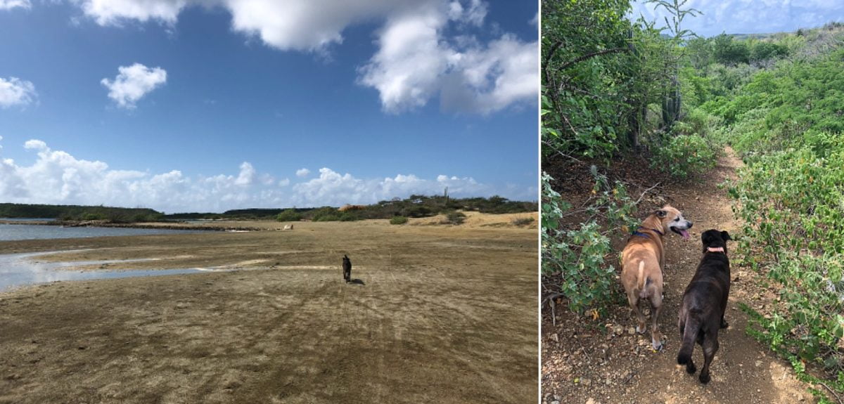 Wandelen! Met Max (de vriend van Joia) en hun honden gaan we wandelen bij de zoutpannen van Jan Thiel. Mijn hemel wat is het hier prachtig.