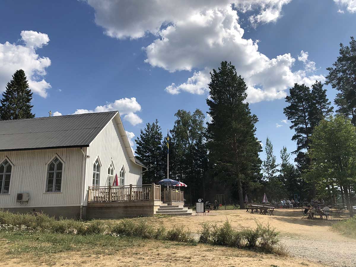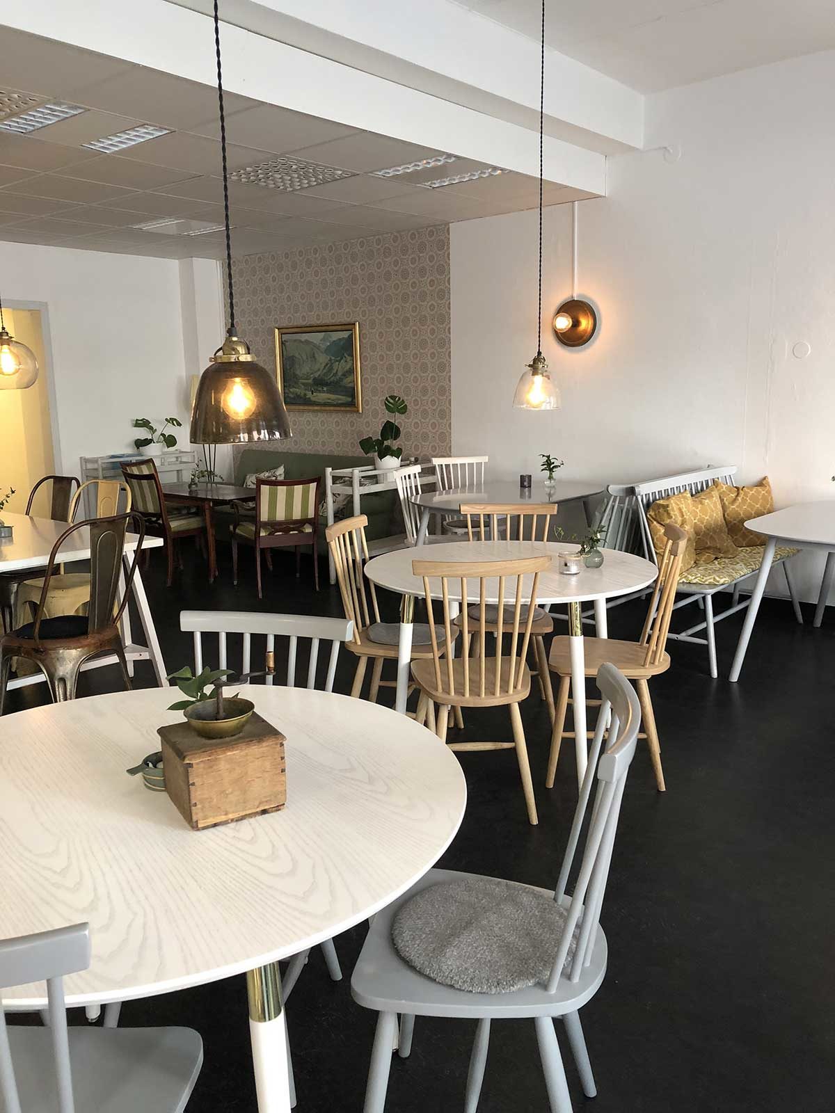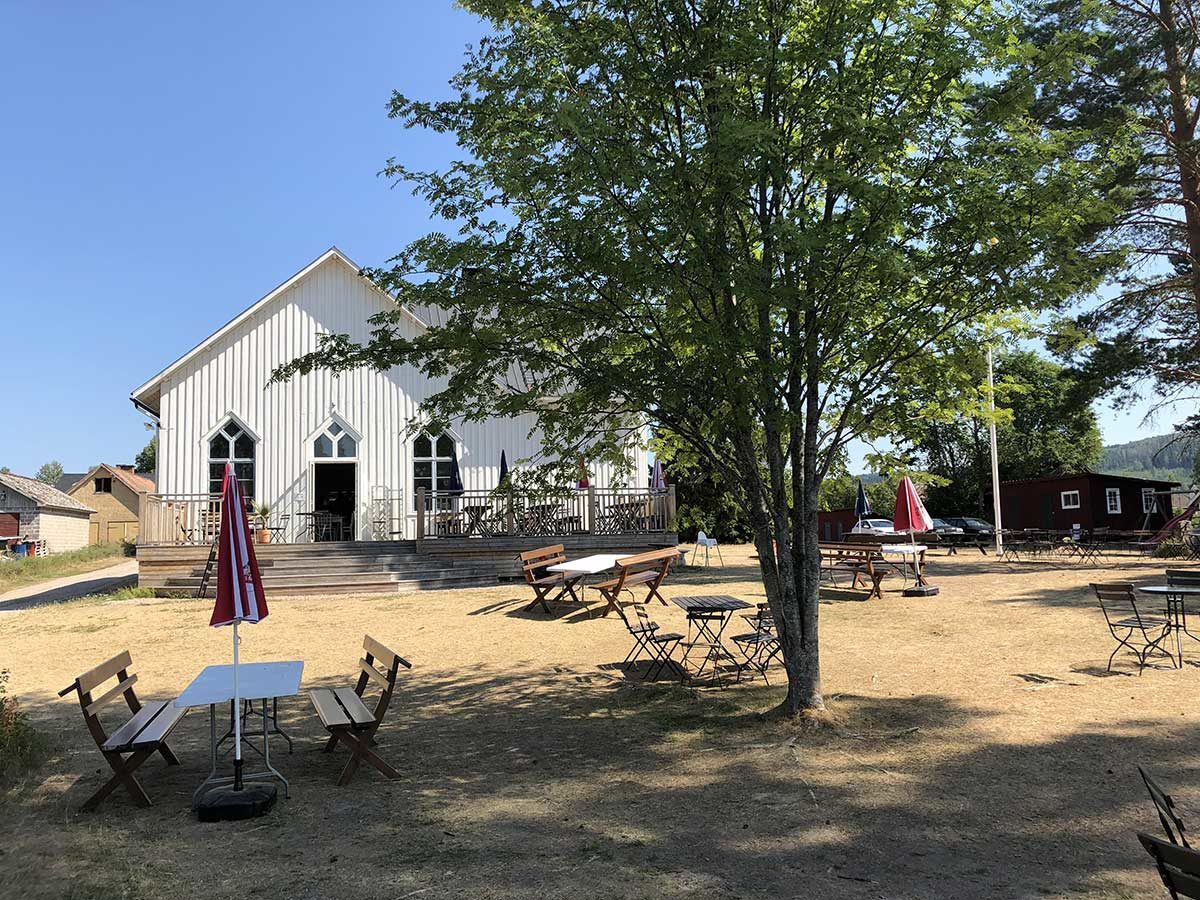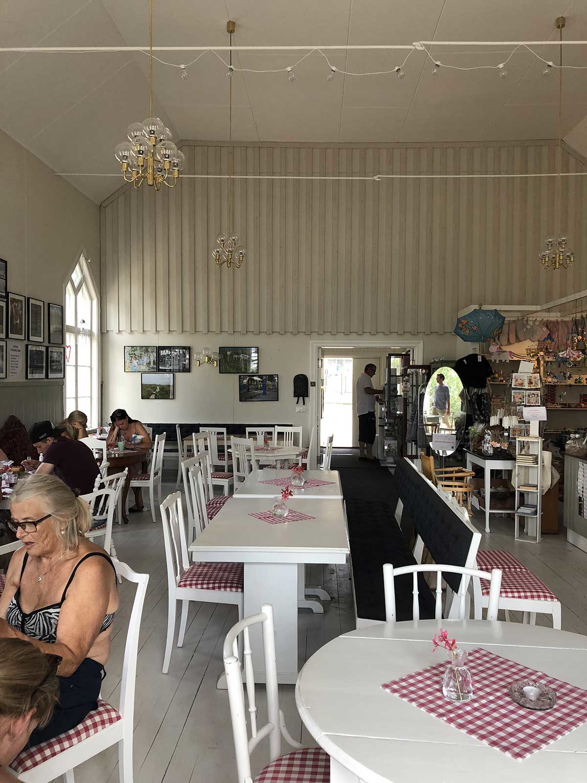 Na onze (warme) wandeling, pakken we de auto en gaan we op weg naar Mormor’s Glasscafé 20 minuten verderop. We gaan een ijsje eten bij deze ‘beroemde’ ijssalon, die op een hele mooie plek ligt aan een meer.