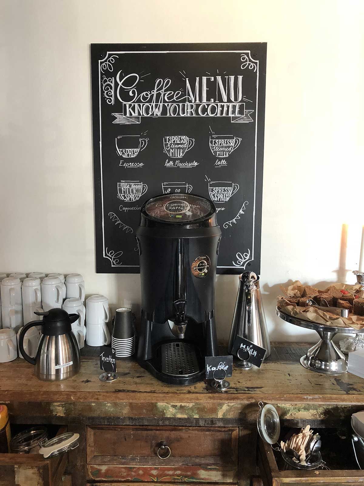 In de lobby kan je de hele middag koffie en lekkers pakken, zo leuk!