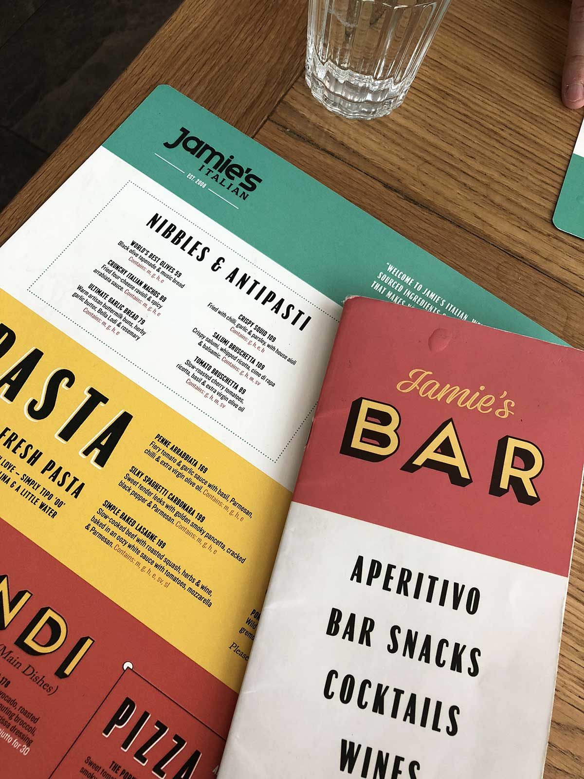 Op het vliegveld eten we wat bij Jamie’s Italian.