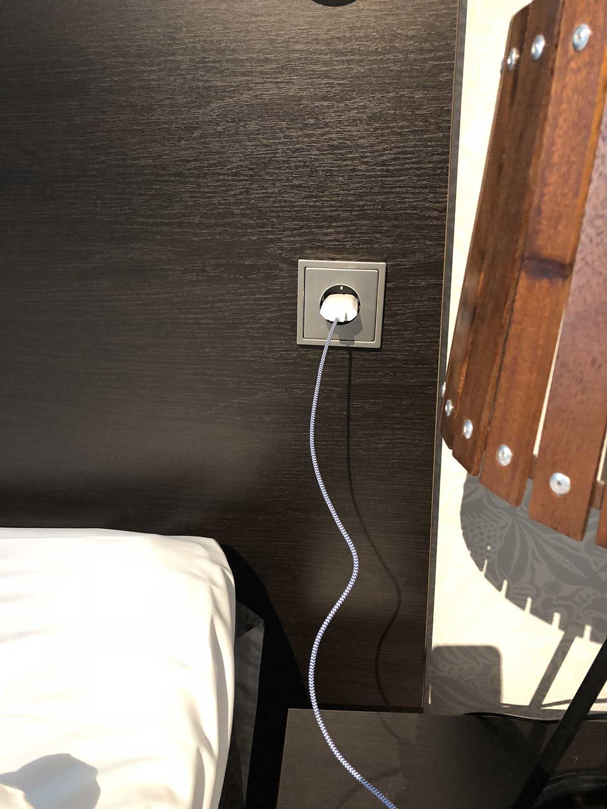 En dit vind ik zo fijn: een stopcontact lekker naast je bed. Ideaal.