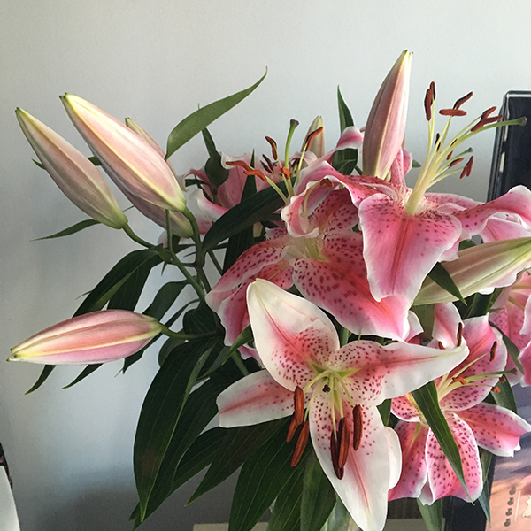 Deze mooie lelies staan al even in de woonkamer en ze worden all茅茅n maar mooier! Ik word er dan extra blij van dat ik ze voor nog geen vijf euro op de markt kocht.