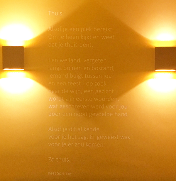 Met Willem en zijn ouders gaan we eten bij Mooirivier. Erg lekker en het is zo prachtig daar. Die omgeving! En het eten is geweldig. Op het toilet zie ik dit mooie gedichtje.